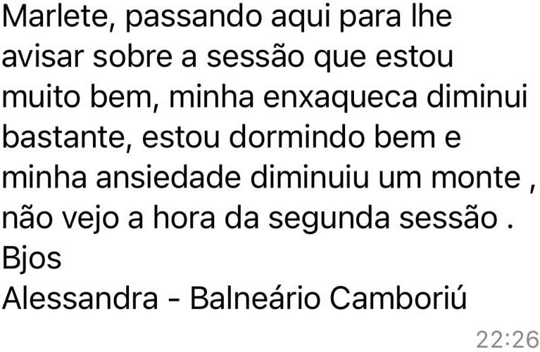 Não é simplesmente uma consulta, é um acompanhamento em todo o tempo em que você estiver em fase de cura, tudo O que acontece desde a gestação até a idade atual, fica registrada no cérebro,…